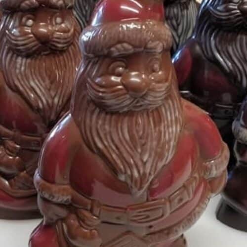 Moulage Père Noël Noir bio, fait maison, sans lécithine, sans conservateur, avec friture noir et lait à l'intérieur