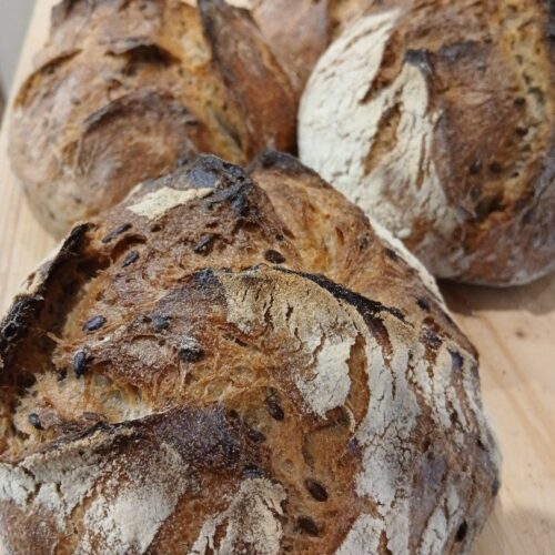 Pain à base de farine semi-complète T80 et de graines de lin.