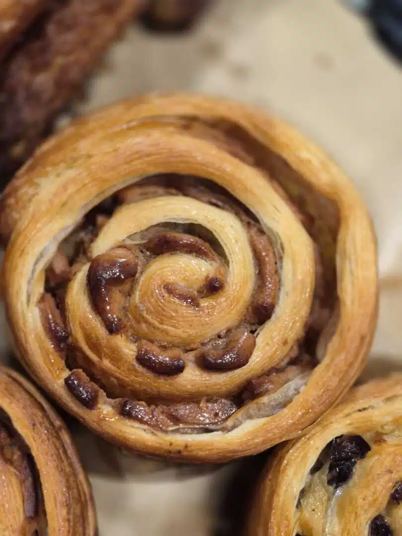 Le cinnamon roll est un roulé de pâte à croissant, fourré avec une crème pâtissière à la cannelle