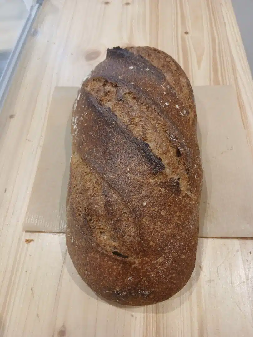 Ce pain de blé est fabriqué à partir de farine de blé type T100 et de levain de blé.