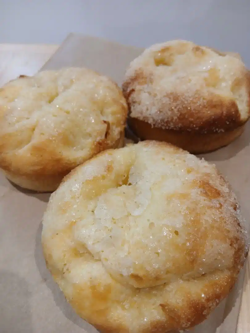 Brioche individuelle garnie de sucre de canne et de crème épaisse ,qui lui donne une texture fondante au coeur et caramélisée sur le dessus.